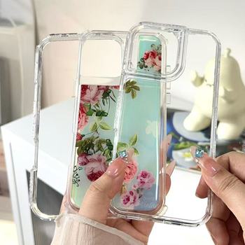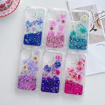 Accesorios para teléfono móvil 3 en 1, funda de flores para iPhone 11 12 13 14, funda de teléfono con purpurina para chica, venta al por mayor